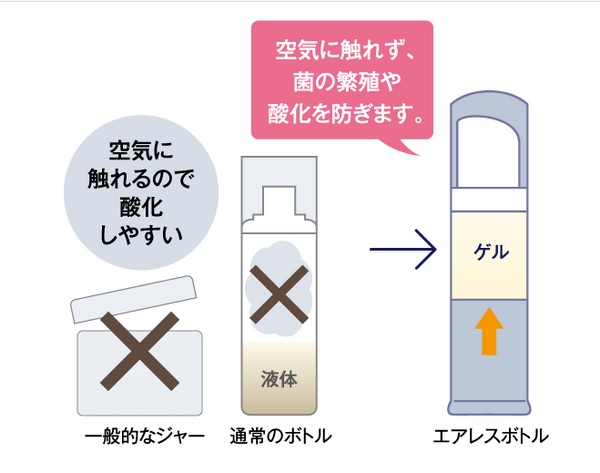 ボトルはエアレスボトルという 真空タイプのボトル で中身が酸化しにくい優れモノです。